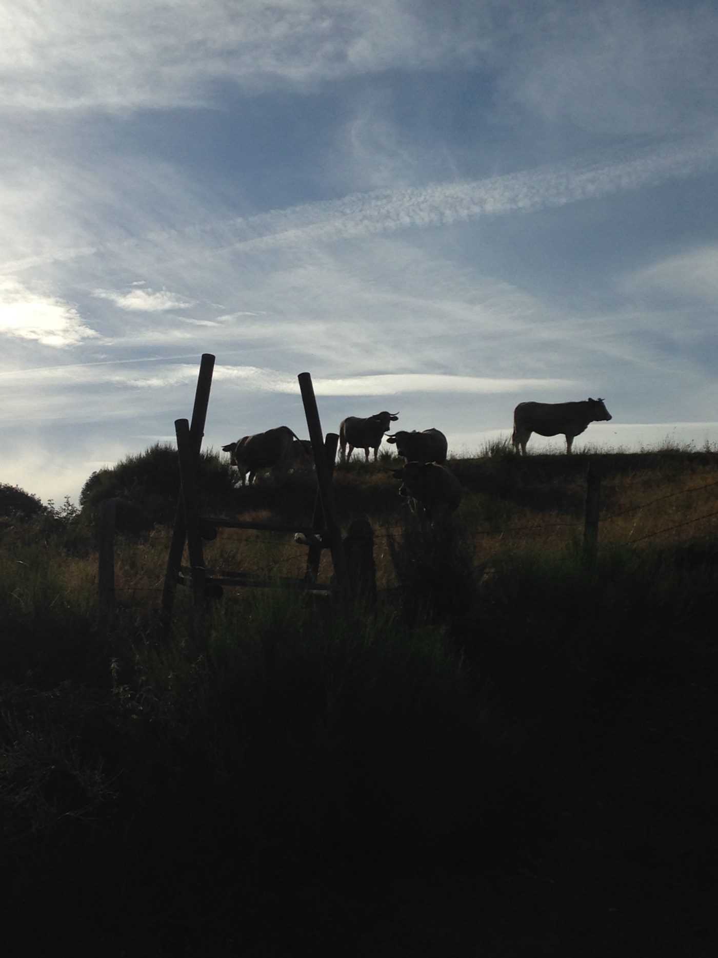 Mini coup de stress avec un troupeau de vaches à croiser dans un champ, l’une d’elle est un peu plus grosse que les autres et m’a tout l’air d’un taureau… enfin, pas le temps de faire l’analyse morphologique, d’autant plus qu’elle est de face et un peu en hauteur, je traverse en gardant le « eye contact » et à quelques mètres de la clôture, je me précipite sous les barbelés !!! Comme par hasard, les chiens ont disparu, moi qui croyais qu’ils me protègeraient en cas d’attaque inopinée…
