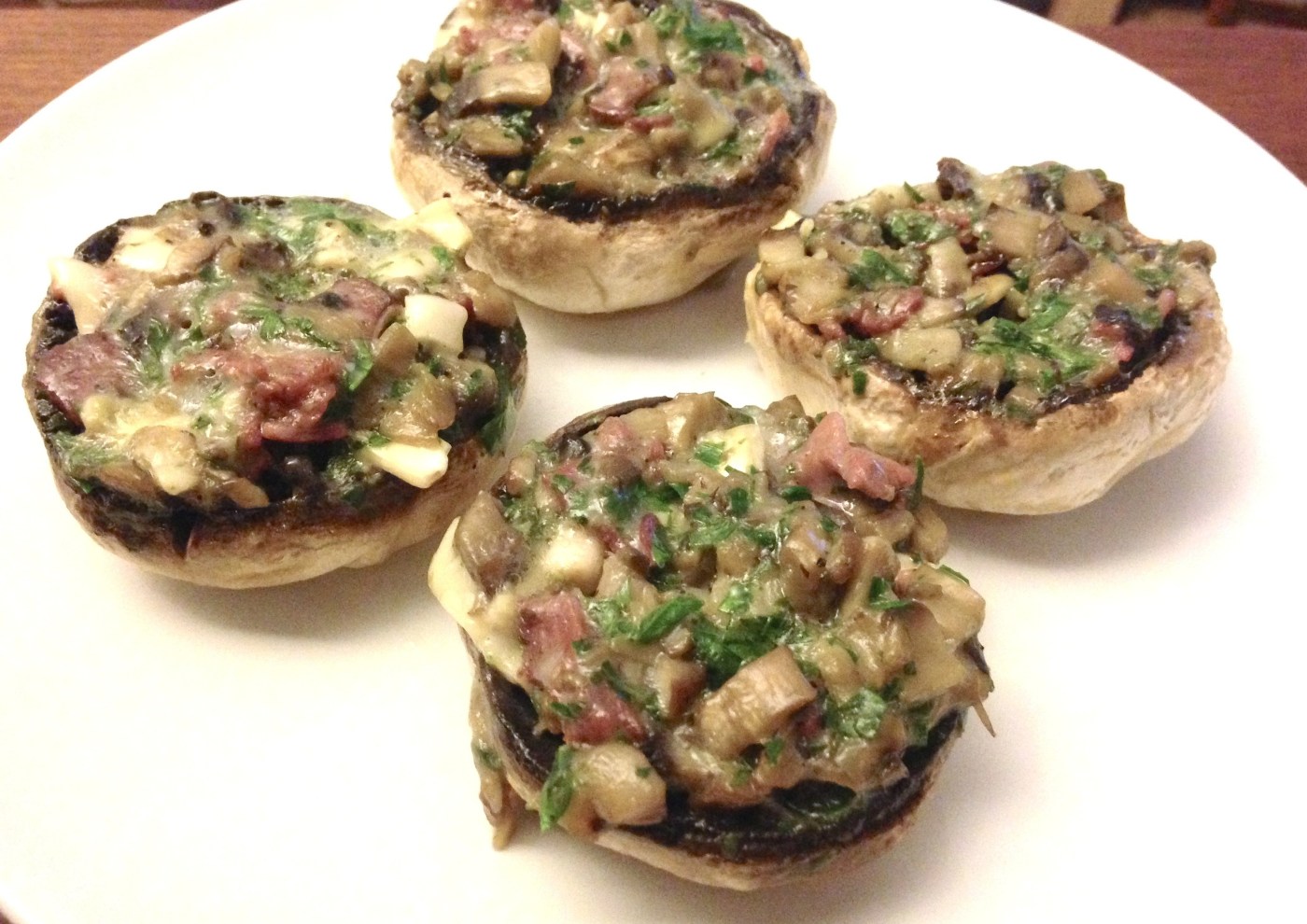 Voici un plat toujours populaire et plutôt facile à faire. Cette fois ci, j’ai choisi de faire une farce avec du canard, je la fais d’habitude avec du lard. Se deguste en entrée ou en plat avec une salade. Ces champignons peuvent être également servis pour l’apéro, dans ce cas, choisir de petits champignons, la préparation est un peu plus fastidieuse…
