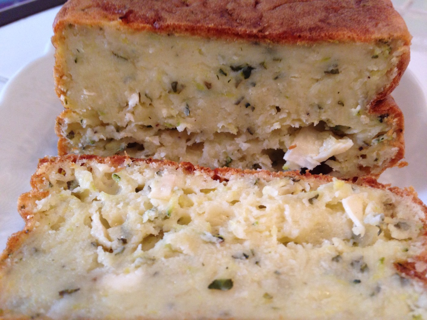 J’ai un beau bouquet de menthe qui parfume ma cuisine ainsi qu’une buche de chèvre dans le frigo, petite recherche sur Internet : je tombe sur le cake chèvre courgettes de Sophie Dudemaine, valeur sûre !! La recette ne prévoit pas de menthe mais du cerfeuil… pas grave, chèvre menthe courgette, je suis sûre de mon coup !!