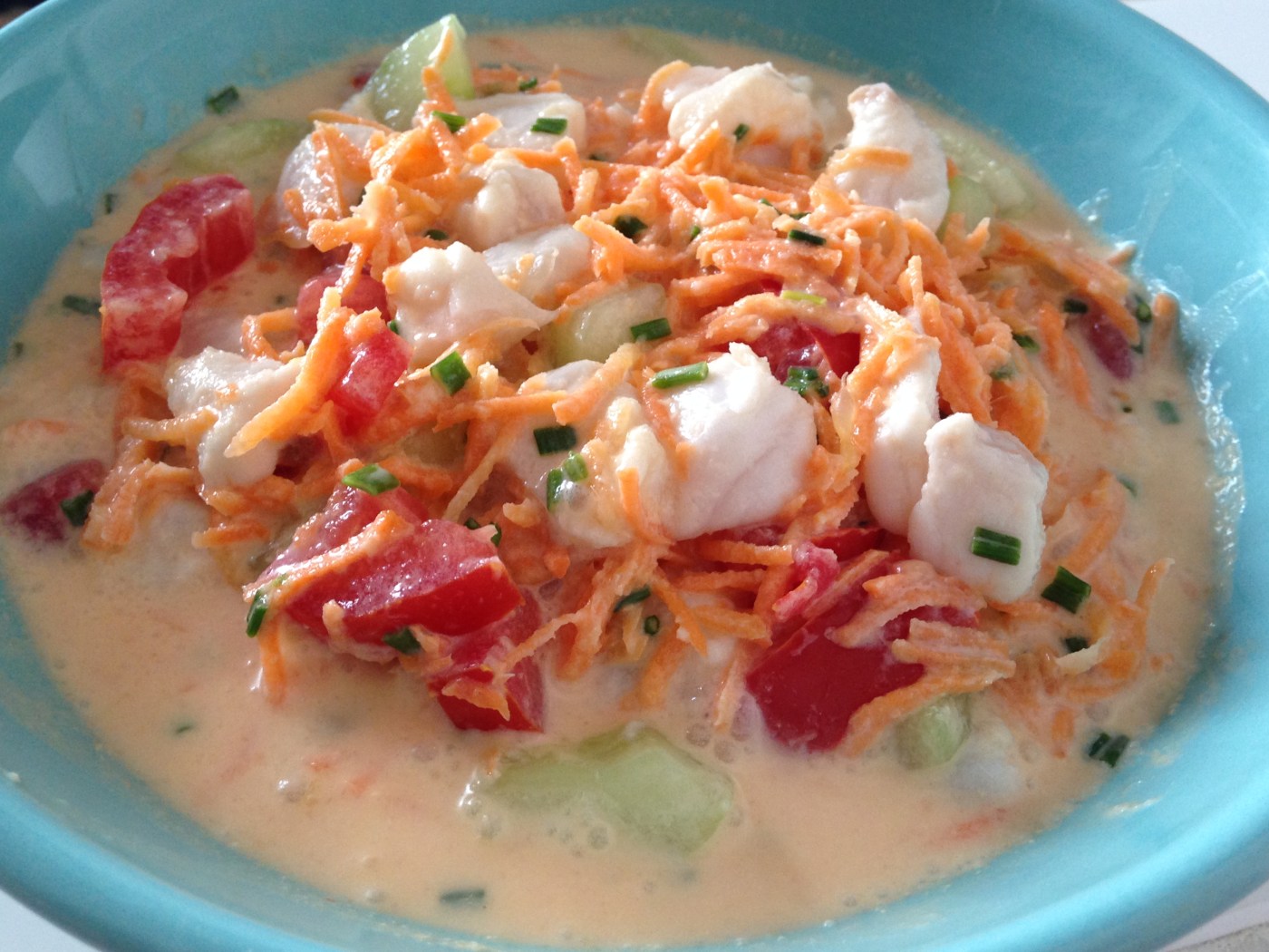 Je tiens cette recette de mon amie Olivia qui est originaire de Nouvelle Calédonie. J’étais à la recherche d’une entrée fraîche et originale et quand Olivia m’a décrit sa recette, je n’avais qu’une envie : l’essayer !! Même si elle paraît très simple, il m’a fallu plusieurs essais pour trouver le bon assaisonnement. Après des débuts hésitants, le succès est désormais assuré à tous les coups !