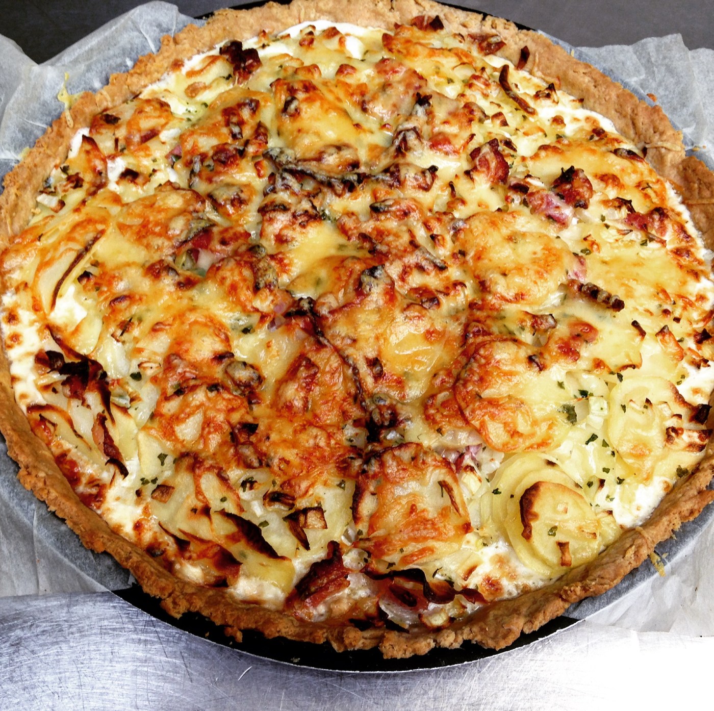Voilà une tarte bien réconfortante par ces froides journées d’hiver, tirée du livre « Les tartes de Sophie ». A mi chemin entre le gratin dauphinois et la tarte flambée ! Bref, un régal pour les amoureux (comme moi) de la pomme de terre…