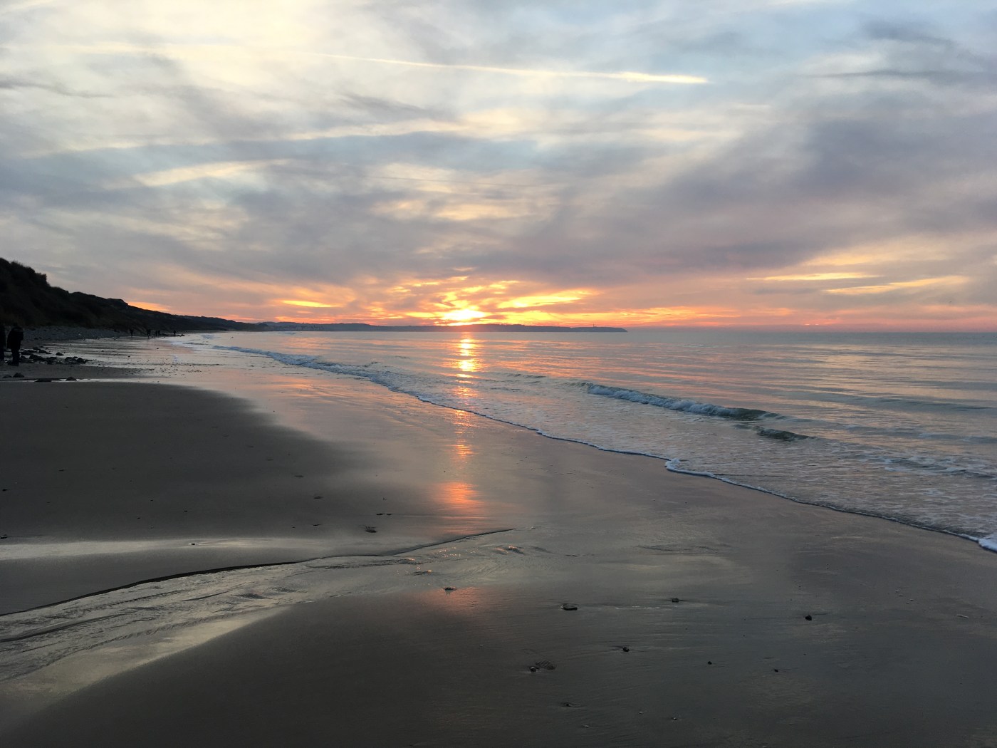 Arrivés à Wissant, nous regardons en arrière et nous pouvons apercevoir le Cap Gris Nez tout petit petit, nous avons fait la moitié du chemin jusqu’au Cap Blanc Nez !