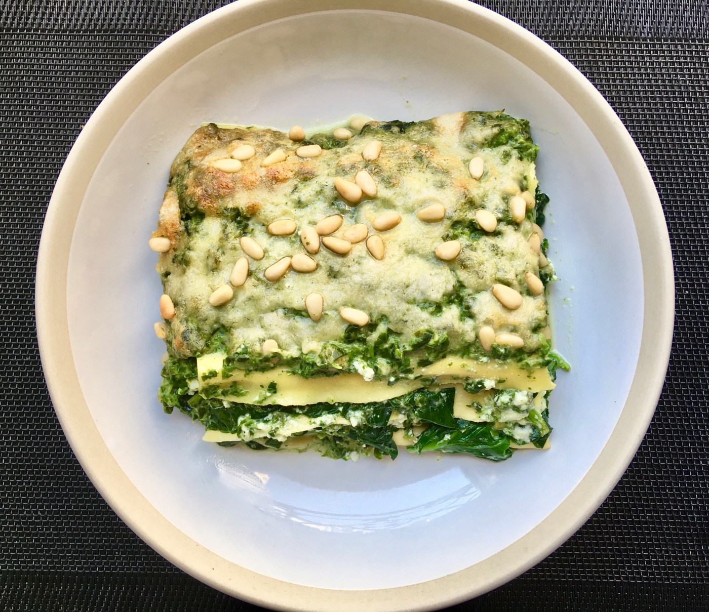 - Dans un plat à gratin beurré, disposer au fond les feuilles de lasagne, une couche d’épinards, puis une couche de brousse à la menthe, puis les feuilles de lasagnes. Répéter jusqu’à épuisement des ingrédients. Terminer par une feuille de lasagne sur laquelle vous versez la sauce aux épinards.