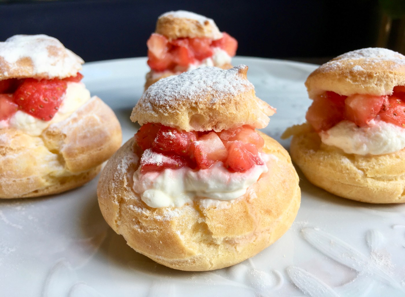 Envie d’impressionner vos invités avec une recette pas si compliquée ? Des petits choux à la crème chantilly mascarpone, tout doux, et avec des fraises c’est trop beau et trop bon !