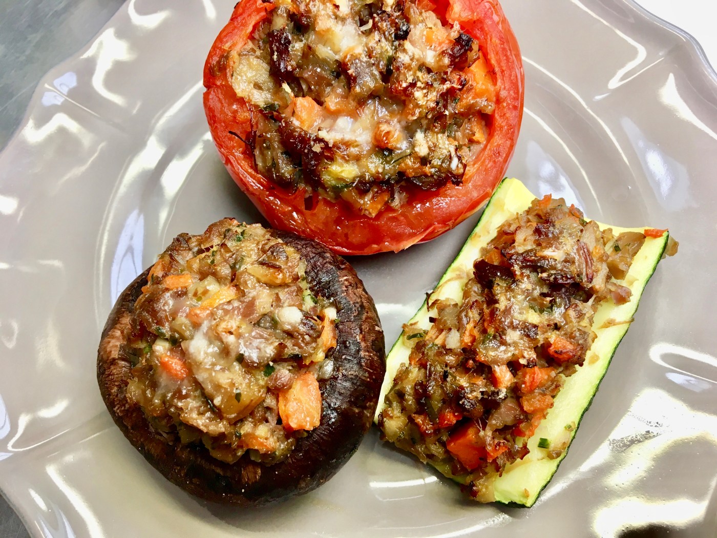 5- Si nécessaire, hacher la farce au couteau puis farcir les légumes et les saupoudrer de parmesan.