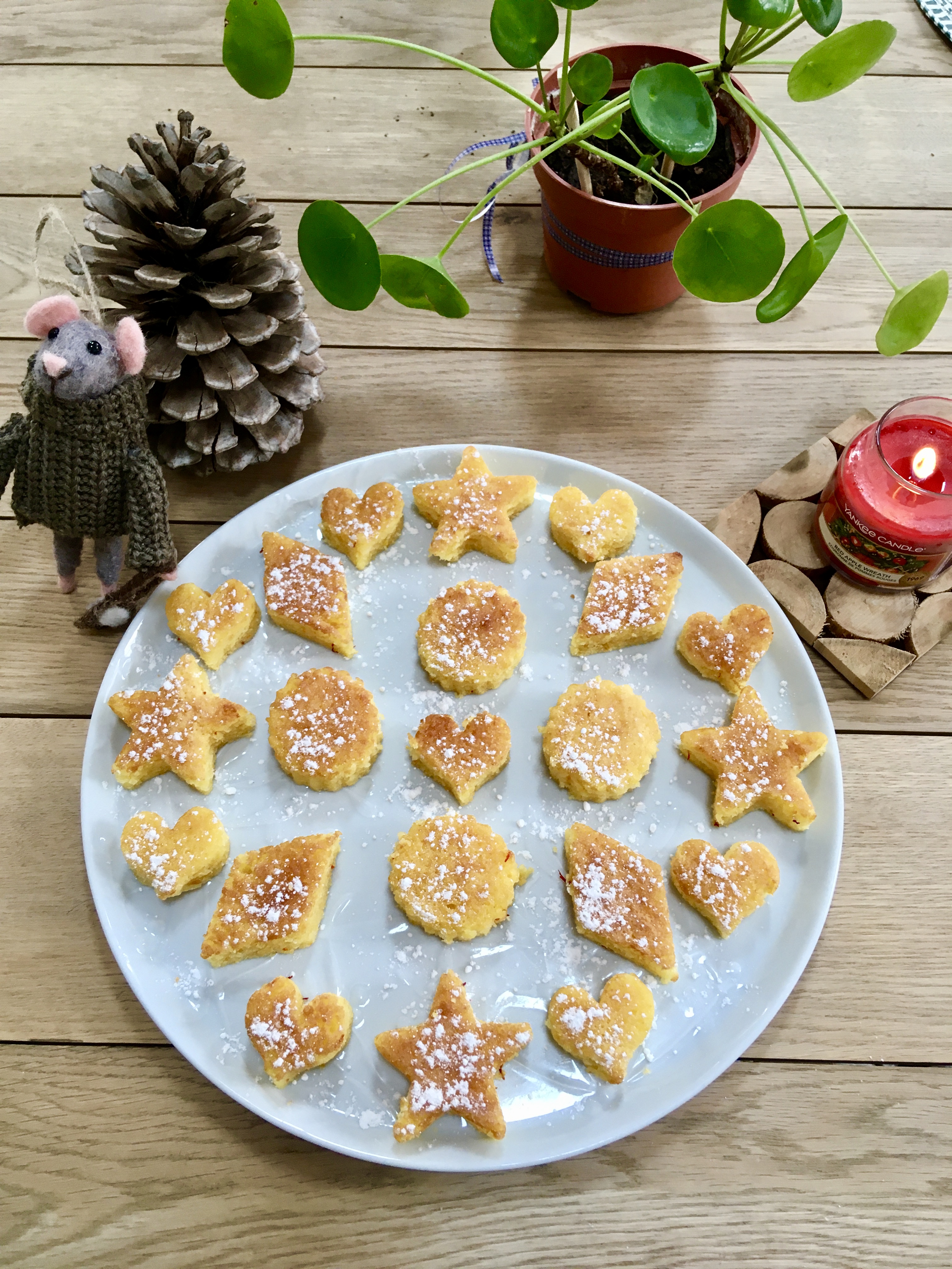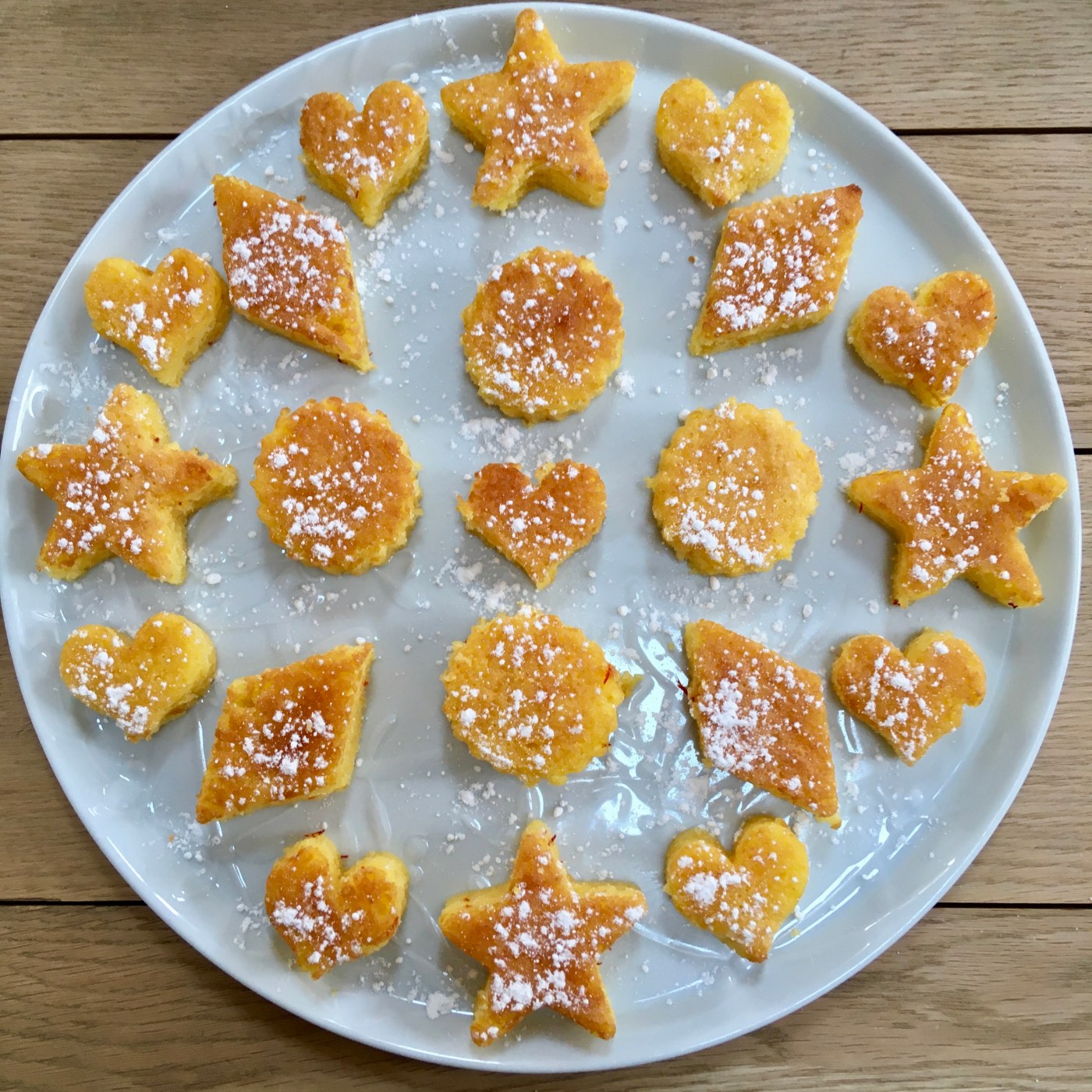 La recette comporte très peu de levure car le gâteau va cuire dans un assez grand moule et on ne veut pas qu’il gonfle trop pour pouvoir découper les formes à l’emporte pièce.