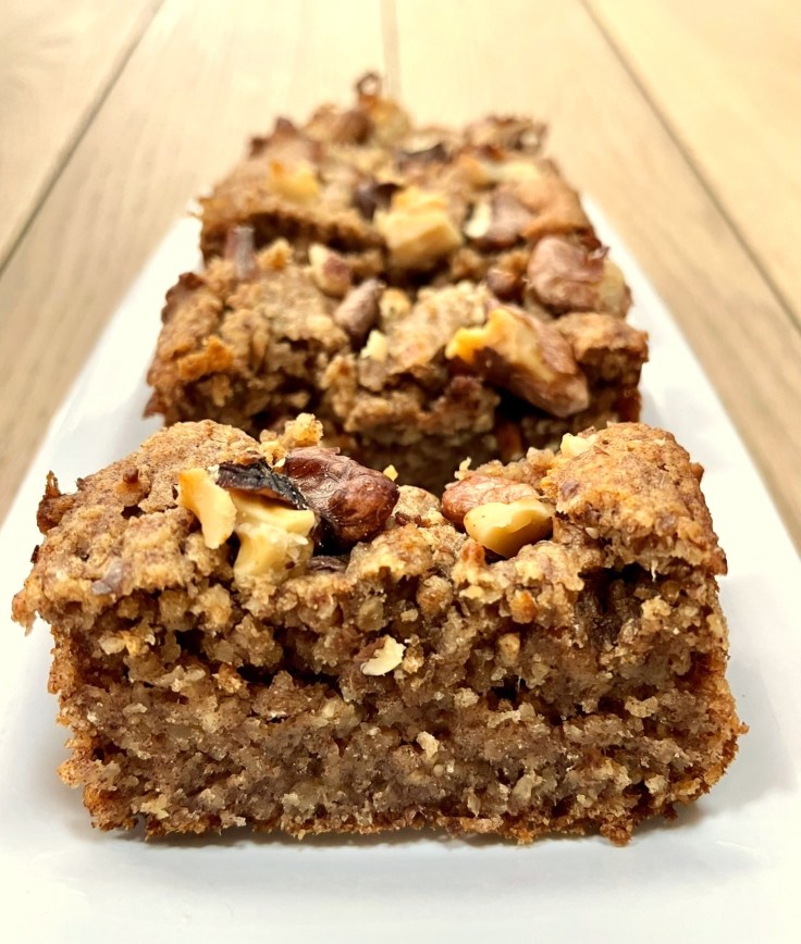 Pour continuer dans la série des gâteaux sains, sans sucre ajouté, sans beurre et riche en fibres : voici un excellent gâteaux aux dattes et aux noix à la texture fondante et au goût sucré très subtile. Il peut être vegan avec du lait végétal et sans gluten avec des flocons d’avoine sans gluten.