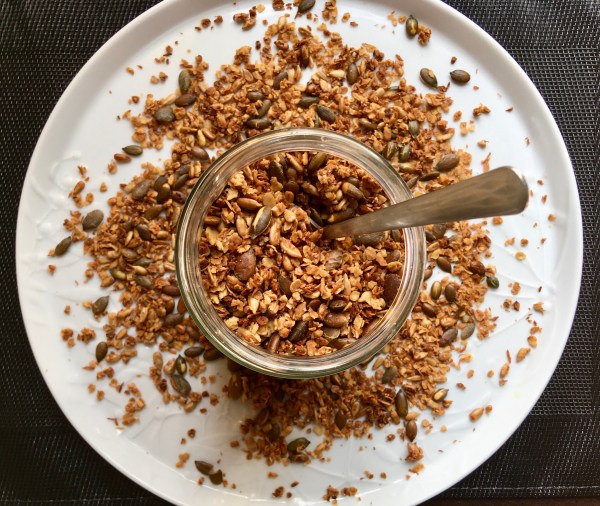 Voilà une recette de Granola qui me vient de ma soeur Isabelle. Mélangé avec un yaourt maison et des fruits, un pur délice ! C'est très simple à faire, vous pouvez en faire une grosse quantité et stocker... il y a toujours une bonne excuse pour manger du granola 😉 Ingrédients : 260 g de... Lire la Suite →