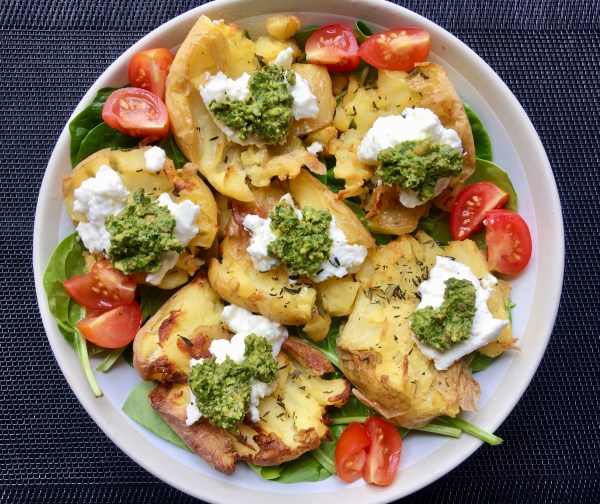 Une nouvelle idée de brunch originale et simplissime : des pommes de terre écrasées cuites au four et servies avec une brousse bien crémeuse (ou de la ricotta, burrata...) et un petit pesto de basilic aux pistaches (ou tout autre pesto / sauce qui vous fait plaisir). On peut également les servir natures, en accompagnement... Lire la Suite →